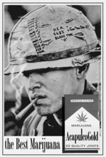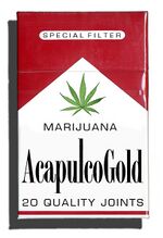 Given its status as an icon of the counterculture movement, Acapulco Gold appeared prominently in American literature during its heyday. The 1972 novel Acapulco Gold by Edwin Corley posited that marijuana would be legalized in the near future and depicted the competition among advertising agencies to secure the first marketing account for marijuana cigarettes.[32] The protagonists in Roberto Bolaño's novel The Savage Detectives were undiscovered writers who began trafficking in Acapulco Gold in order to fund a literary magazine,[33] and Acapulco Gold cigarettes are described as a top brand in David Gerrold's Nebula Award-winning fix-up When HARLIE Was One.[34]