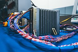 Fly-by-wire systems translate a pilot's inputs into commands sent to an aircraft's motors, propeller governors, ailerons, elevators and other moving surfaces.[53] They are essential in multirotor designs because human pilots cannot control multiple propellers without computer assistance. In June 2019, Honeywell introduced a miniaturized computer specifically designed for UAM aircraft.[54][52]