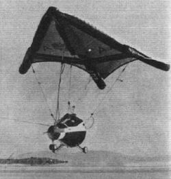 Between 1961 and 1965 the ability of the Rogallo wing (also called "Parawing") to descend a payload such as the Gemini space capsule safely from high altitude to ground was studied.[1][2] The Paresev was a test vehicle used to learn how to control this parachute-wing for a safe landing at a normal airfield.