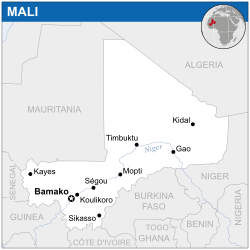 Mali still struggles with terrorism and ethnic violence. During the Tuareg conflicts, many Malians fled the country and have stayed abroad in places like Mauritania, Niger, and Burkina Faso.[5] Mali is still in the bottom 25 poorest countries globally, and its economy is mainly dependent on gold mining and cotton exports.