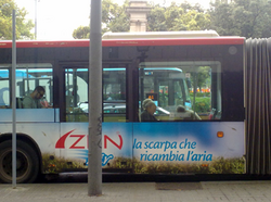 The language family as a whole can be referred to as 'Romance',[13] and it still functions as one language or macrolanguage in some present-day situations, where intercomprehension or accommodation (partial assimilation) take place. For example, some adverts (or parts of them) are published in foreign Romance languages (the attached image shows an advert in Italian on a bus in Barcelona). And mixed varieties like Portuñol or Frespañol arise spontaneously to communicate with speakers of other Romance languages, for example while visiting their country. All this shows that spoken and written communication amongst Romance speakers is still a reality and that, to some extent, they are a linguistic community.