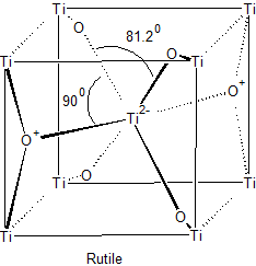 The majority of transition metal dioxides (MO2) have the rutile structure, seen to the right. Materials of this stoichiometry exist for Ti, Cr, V and Mn in the first row transition metal and for Zr to Pd in the second. The rutile structure is generated by filling half of the octahedral sites with cations of the hcp oxygen anion array.[5][6]