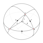 A geodesic triangle is formed by the geodesics joining each pair out of three points on a given surface. On the sphere, the geodesics are great circle arcs, forming a spherical triangle.