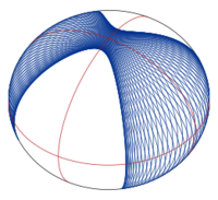 The most familiar examples are the straight lines in Euclidean geometry. On a sphere, the images of geodesics are the great circles. The shortest path from point A to point B on a sphere is given by the shorter arc of the great circle passing through A and B. If A and B are antipodal points, then there are infinitely many shortest paths between them. Geodesics on an ellipsoid behave in a more complicated way than on a sphere; in particular, they are not closed in general (see figure).