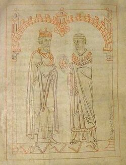 According to John of Biclaro, in 570 Miro succeeded Theodemar as king of the Sueves.[71][72] During his time, the Suevic kingdom was challenged again by the Visigoths who, under their king Leovigild, were reconstituting their kingdom, reduced and mostly ruled by foreigners since their defeat by the Franks in the Battle of Vouillé.[73]
