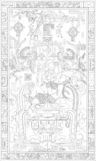 Von Däniken writes that ancient art and iconography throughout the world illustrates air and space vehicles, non-human but intelligent creatures, ancient astronauts, and artifacts of an anachronistically advanced technology. Von Däniken also states that geographically separated historical cultures share artistic themes, which he argues imply a common origin. One such example is von Däniken's interpretation of the sarcophagus lid recovered from the tomb of the Classic-era Maya ruler of Palenque, Pacal the Great. Von Däniken writes that the design represented a seated astronaut. The iconography and accompanying Maya text, however, identifies it as a portrait of the ruler himself with the World Tree of Maya mythology.
