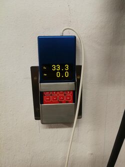 Helium content may also be determined on the basis of measuring the speed of sound in the analyzed gas mixture.[3] The speed of sound depends on the mixture of gases and the temperature of the mix; in the analysis of trimix the speed of sound can be described by a non-linear function of temperature, oxygen content and helium content, and thus the content of helium can be determined by measuring the speed of sound through the mix, the temperature of the mix and its oxygen content.