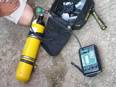 A Helium analyzer is an instrument used to identify the presence and concentration of helium in a mixture of gases. In Technical diving where breathing gas mixtures known as Trimix comprising oxygen, helium and nitrogen are used, it is necessary to know the fraction of helium in the mixture to reliably calculate decompression schedules for dives using that mixture.