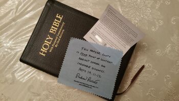 Pentecostal theologian Mark Pearson states that the Bible speaks of sacramentals, sometimes referred to as points of contact, such as blessed prayer cloths (Acts 19:11-19:12) and holy oil (James 5:14).[2] He states that God is the source of healing and that Pentecostal clergy "can confidently offer prayer, administer the various sacramentals, and lay hands on the sick".[2]