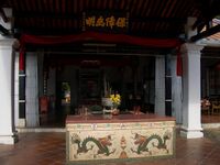 Tua Pek Kong is claimed to have been a Hakka named Zhang Li (Chinese: 張理). His Sumatra-bound boat was struck by wind and accidentally landed on Penang off Malaysia, which at that time had only 50 inhabitants. After his death, the local people began worshipping him and built the Tua Pek Kong temple there. Today, Tua Pek Kong is worshipped by Malaysian Chinese throughout the country. However, Pek Kong is also a honorific title for Tu Di Gong or the Earth Deity within Chinese community.