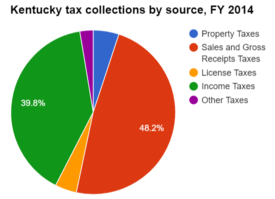 The table below lists 2014 tax collections by source as percentages of total collections. About 48.2 percent of Kentucky's total state tax collections came from sales taxes and gross receipts.[5]