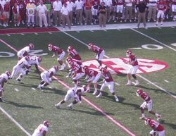 A football team began representing the University of Arkansas in 1894 and has since become one of the nation's top 25 programs in terms of all-time wins at the Football Bowl Subdivision level.[52] The program was a charter member of the Southwest Conference (SWC) in 1915 and remained in that conference until departing for the Southeastern Conference in 1991, where Arkansas has remained.[53] From 1915 to 1991, the Razorbacks won the SWC championship 13 times and the national championship in the 1964 season, with great success coming under coaches Frank Broyles, Lou Holtz and Ken Hatfield.[53] Today, the team plays its home games on campus at Donald W. Reynolds Razorback Stadium, or at War Memorial Stadium, located in Little Rock, making the University of Arkansas the only Division I program with two home stadia.[54] Arkansas has also had recent success in the Bowl Championship Series (BCS) era, obtaining its first BCS berth in the 2011 Sugar Bowl and climbing as high as #3 in the BCS rankings in 2011 under Bobby Petrino.[55]