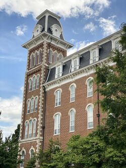 The University of Arkansas campus sweeps across hilltops on the western side of Fayetteville, Arkansas. Among the 378 buildings on the campus, 11 buildings have been added to the National Register of Historic Places individually, with most buildings in the historic core being named as contributing properties to the University of Arkansas Campus Historic District.[41]
