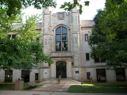 Old Main contains classrooms, the restored Giffels Auditorium, as well as the administrative offices of the J. William Fulbright College of Arts and Sciences.[13] The lawn at Old Main serves as an arboretum.[14]