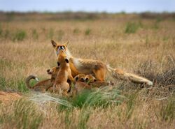Grasslands support the greatest aggregations of large animals on earth, including jaguars, African wild dogs, pronghorn, black-footed ferret, plains bison, mountain plover, African elephant, Sunda tiger, black rhino, white rhino, savanna elephant, greater one-horned rhino, Indian elephant and swift fox. Grazing animals, herd animals, and predators in grasslands, like lions and cheetahs live in the grasslands of the African savanna.[17] Mites, insect larvaenematodes, and earthworms inhabit deep soil, which can reach 6 metres (20 feet) underground in undisturbed grasslands on the richest soils of the world. These invertebrates, along with symbiotic fungi, extend the root systems, break apart hard soil, enrich it with urea and other natural fertilizers, trap minerals and water and promote growth. Some types of fungi make the plants more resistant to insect and microbial attacks.[18]