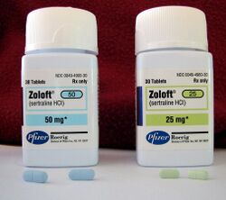 In 1991 Pfizer also began marketing Zoloft (sertraline), an antidepressant of the selective serotonin reuptake inhibitor (SSRI) class developed nine years earlier by Pfizer chemists Kenneth Koe and Willard Welch. Sertraline is primarily prescribed for major depressive disorder in adult outpatients as well as obsessive-compulsive disorder, panic disorder, and social anxiety disorder in both adults and children. In 2005, the year before it became a generic drug, sales were over $3billion and over 100million people had been treated with the drug.[22] The patent for Zoloft expired in the summer of 2006.[23]