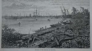 From Handwiki Template:Infobox hurricane On October 5, 1864, most of the areas of Calcutta (present-day Kolkata), India was inundated and destroyed by a tropical cyclone. Dubbed the 1864 Calcutta cyclone, the storm caused over 60,000 fatalities in its wake. The cyclone crossed the coast of West Bengal to the south of Hooghly River, one of the streams that are included in the Ganges River Delta. The majority of the deaths were from drowning and the others from sicknesses prevailing before the storm. The said river overflowed due to a storm surge and as the water rushed inland, everything in its course were washed away. The city, the other surrounding areas, and some harbors had to be rebuilt after the cyclone. There was also fundraising event established, but it failed. The total damages from the said storm were at Rs 99,200.