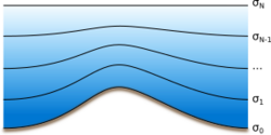 Some oceanographic models uses coordinates which similarly transition from density (isopycnic) to sigma coordinates in shallow coastal shelf regions.[4]