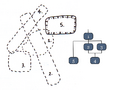Single context recording of a stratigraphically excavated sequence evolves into an overlay of planned contexts that build a Harris matrix during excavation. (see Stratification (archeology) and Harris matrix) This is demonstrated in the gallery below of a hypothetical and abstract 5 step sequence of contexts. The excavation starts with the planning and removal of a deposit in step 1 and continues down through a sequence of 4 cut features. Note how only the stratigraphic relationships build into the matrix as the excavation progresses rather than all the physical relationships. (For planning convention styles see archaeological plan)