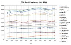 CSU has traditionally been more accommodating to older students than UC, by offering more degree programs in the evenings and, more recently, online.[110][111] In addition, CSU schools, especially in more urban areas, have traditionally catered to commuters, enrolling most of their students from the surrounding area. This has changed as CSU schools increase enrollment and some of the more prestigious urban campuses attract a wider demographic.[112]