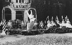 The resulting administrative situation from 1921 to 1960 was quite complicated. On the one hand, the Department of Education's actual supervision of the presidents of the State Teachers Colleges was minimal, which translated into substantial autonomy when it came to day-to-day operations.[17] According to Clark Kerr, J. Paul Leonard, the president of San Francisco State from 1945 to 1957, once boasted that "he had the best college presidency in the United States—no organized faculty, no organized student body, no organized alumni association, and...no board of trustees."[18] On the other hand, the State Teachers Colleges were treated under state law as ordinary state agencies, which meant their budgets were subject to the same stifling bureaucratic financial controls as all other state agencies (except the University of California).[17] At least one president would depart his state college because of his express frustration over that issue: Leonard himself.[17] (One of the lasting legacies of this era is that Cal State employees, like other state employees (but not UC or local government employees) are still paid by the state controller and receive retirement benefits from CalPERS.)