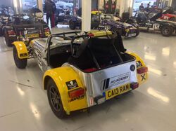 In 1995 the Caterham Academy, a novices-only format, was introduced in the UK as the Caterham Scholarship. For a starting price of £24,995 (2017), entrants get a modified Roadsport kit (a factory-built option is available for extra cost) with a sealed Ford Sigma engine and 5-speed gearbox. Having completed the ARDS (racing) licence qualification, the season then consists of a car-control day, a test day, and the season starts with two sprints, and five circuit races.