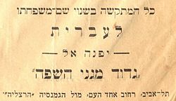Our surnames are mostly of foreign origin, which cling to exile [...] even names based on Hebrew first names were damaged and distorted from the original [...] by German and English suffixes, like "son" or "sohn" and the Slavic "in", "ovich", "ovsky" and "shvili". These surnames fill the air and the pages of our newspaper, the posters and announcements in our streets and public squares [...] it is indeed not really clear if the hardship of this inheritance which remained with us as a result of the Middle Ages and subsequent ghettoization should be tolerated...