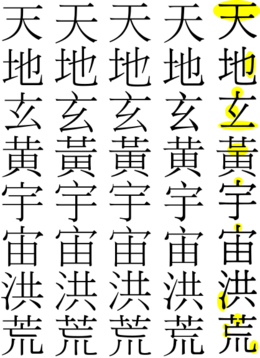Variant Chinese characters (traditional Chinese: 異體字; simplified Chinese: 异体字; pinyin: yìtǐzì; kanji: 異体字; Hepburn: Script error: The function "transl" does not exist.; Korean: 이체자; Hanja: 異體字; Revised Romanization: Script error: The function "transl" does not exist.) are Chinese characters that are homophones and synonyms. Most variants are allographs in most circumstances, such as casual handwriting. Some contexts require the usage of certain variants, such as in textbook editing.