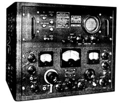 The radio spectrum scope (also radio panoramic receiver, panoramic adapter, pan receiver, pan adapter, panadapter, panoramic radio spectroscope, panoramoscope, panalyzor and band scope) was invented by Marcel Wallace - and measures and shows the magnitude of an input signal versus frequency within one or more radio bands - e.g. shortwave bands.[1][2] A spectrum scope is normally a lot cheaper than a spectrum analyzer, because the aim is not high quality frequency resolution - nor high quality signal strength measurements.