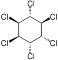 Lindane, also known as gamma-hexachlorocyclohexane (γ-HCH), gammaxene, Gammallin and benzene hexachloride (BHC),[2] is an organochlorine chemical and an isomer of hexachlorocyclohexane that has been used both as an agricultural insecticide and as a pharmaceutical treatment for lice and scabies.[3][4]