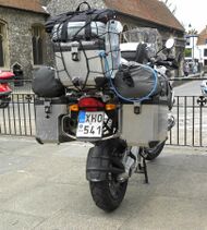 Modern touring motorcycles often have panniers or saddlebags fitted as standard or available as options. They normally come in pairs but may be used individually.