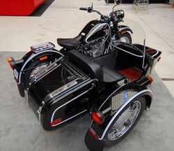 A sidecar turns a motorcycle into a three-wheeled vehicle. Their peak popularity (160,000 in the UK in 1955,[3] pre-World War II in the United States) came about when powerful motorcycles were available, but there were relatively few cars about. Sidecars such as the British Watsonian were coach-built in wood and had doors, sliding windows and even a sun-roof, but modern sidecars may be fibreglass or aluminium. Alignment of the sidecar is critical and the mountings come under considerable stress, making a quickly-detachable version largely impractical. In any case, the special sidecar tyres are poorly-suited to solo riding.