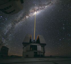A laser-guided observation of the Milky Way Galaxy at the Paranal Observatory in Chile in 2010