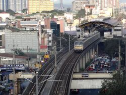 Tutuban station, the central terminal of the Philippine National Railways, lies within Manila.[339][340] Within Metro Manila, one commuter railway is in operation. The line runs in a general north–south direction from Tutuban (Tondo) toward the province of Laguna. The Port of Manila, which is located in the western section of the city on Manila Bay, is the largest and chief seaport of the Philippines.[341] The Pasig River Ferry Service is another form of transportation.[342] The city is also served by Ninoy Aquino International Airport, the country's main international airport and domestic air hub.[343]