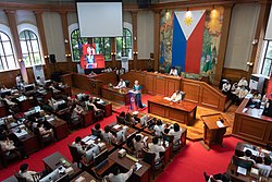 As of May 2022, the Mayor of Manila is Maria Shielah "Honey" Lacuna-Pangan, daughter of former Manila vice mayor Danilo Lacuna. Lacuna is the city's first female mayor.[314] The vice mayor is Yul Servo. The mayor and the vice mayor are limited to up-to three terms, each term lasting for three years. The city has an ordinance penalizing cat-calling since 2018, and is the second city in the Philippines to do so after Quezon City, which passed a similar ordinance in 2016.[315] In 2017, the city government planned to revise the existing curfew ordinance since the Supreme Court declared it unconstitutional in August that year. Of the three cities reviewed by the Supreme Court; the City of Manila, Navotas, and Quezon City; only the curfew ordinance of Quezon City was approved.[316][317]