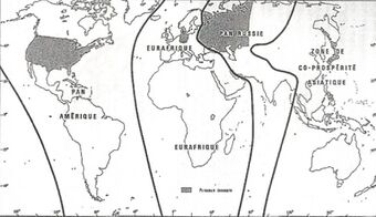 Another famous follower of Mackinder was Karl Haushofer who called Mackinder's Geographical Pivot of History a "genius' scientific tractate."[28] He commented on it: "Never have I seen anything greater than those few pages of geopolitical masterwork."[29] Mackinder located his Pivot, in the words of Haushofer, on "one of the first solid, geopolitically and geographically irreproachable maps, presented to one of the earliest scientific forums of the planet – the Royal Geographic Society in London"[28] Haushofer adopted both Mackinder's Heartland thesis and his view of the Russian-German alliance – powers that Mackinder saw as the major contenders for control of Eurasia in the twentieth century. Following Mackinder he suggested an alliance with the Soviet Union and, advancing a step beyond Mackinder, added Japan to his design of the Eurasian Bloc.[30]