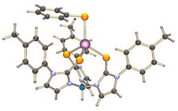 From Handwiki Tm is an abbreviation for anionic tridentate ligand based on three imidazole-2-thioketone groups bonded to a borohydride center. They are examples of scorpionate ligands. Various ligands in this family are known, differing in what substituents are on the imidazoles. The most common is TmMe, which has a methyl group on the nitrogen. It is easily prepared by the reaction of molten methimazole (1-methylimidazole-2-thione) with sodium borohydride, giving the sodium salt of the ligand. Salts of the TmMe anion are known also for lithium and potassium. Other alkyl- and aryl-group variations are likewise named TmR according to those groups.[1]