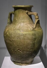 Stone tools recovered reveal a settlement of people from Africa some 127,000 years ago and a stone tool used for butchering animals discovered on the Arabian coast suggests an even older habitation from 130,000 years ago.[31] There is no proof of contact with the outside world at that stage, although in time lively trading links developed with civilisations in Mesopotamia, Iran and the Harappan culture of the Indus Valley. This contact persisted and became wider, probably motivated by the trade in copper from the Hajar Mountains, which commenced around 3,000 BCE.[32] Sumerian sources talk of the Magan civilisation, which has been identified as encompassing the modern UAE and Oman.[33]