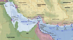 The spread of Islam to the northeastern tip of the Arabian Peninsula is thought to have followed directly from a letter sent by the Islamic prophet, Muhammad, to the rulers of Oman in 630 CE, nine years after the hijrah. This led to a group of rulers travelling to Medina, converting to Islam and subsequently driving a successful uprising against the unpopular Sassanids, who dominated the coast at the time.[34] Following the death of Muhammad, the new Islamic communities south of the Persian Gulf threatened to disintegrate, with insurrections against the Muslim leaders. Caliph Abu Bakr sent an army from the capital Medina which completed its reconquest of the territory (the Ridda Wars) with the Battle of Dibba in which 10,000 lives are thought to have been lost.[35] This assured the integrity of the Caliphate and the unification of the Arabian Peninsula under the newly emerging Rashidun Caliphate.
