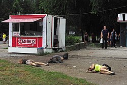 Russia engaged in an unusual case of reverse asymmetrical warfare in 2014 by invading the much weaker nation of Ukraine without using identifying marks on its soldiers or equipment. During the invasion, Vladimir Putin claimed that his soldiers were actually Ukrainian partisans, and dared the Ukrainian Army to shoot at Ukrainian civilians, behind whom the unmarked Russian soldiers were hiding.[10]:165-166