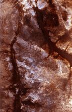 The thin top layer of the Earth's crust on land is largely made up of soil colored different shades of brown.[33] Good soil is composed of about forty-five percent minerals, twenty-five percent water, twenty-five percent air, and five percent organic material, living and dead. Half the color of soil comes from minerals it contains; soils containing iron turn yellowish or reddish as the iron oxidizes. Manganese, nitrogen and sulfur turn brownish or blackish as they decay naturally.