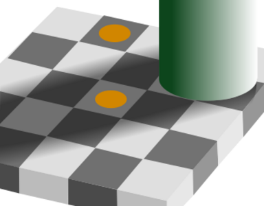The colored disks appear to be brown and orange, but are actually an identical shade; their perceived color depends on the shade of grey they are surrounded by.[18]