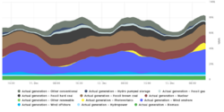Increasing the supply of renewable energy tends to lower the average price per unit of electricity because wind energy and solar energy have very low marginal costs: they do not have to pay for fuel, and the sole contributors to their marginal cost is operations and maintenance. With cost often reduced by feed-in-tariff revenue, their electricity is as a result, less costly on the spot market than that from coal or natural gas, and transmission companies buy from them first.[2][3] Solar and wind electricity therefore substantially reduce the amount of highly priced peak electricity that transmission companies need to buy, reducing the overall cost. A study by the Fraunhofer Institute ISI found that this "merit order effect" had allowed solar power to reduce the price of electricity on the German energy exchange by 10% on average, and by as much as 40% in the early afternoon. In 2007[needs update]; as more solar electricity is fed into the grid, peak prices may come down even further.[3] By 2006, the "merit order effect" meant that the savings in electricity costs to German consumers more than offset for the support payments paid for renewable electricity generation.[3]