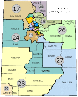 On August 19, 2011, the Utah legislative redistricting committee met to review plans submitted during the state’s public input period. The fate of Utah County remained central to the debate on the maps. The county grew by 40% since 2001 and could in theory warrant two additional house districts (14 total) and two additional senate districts (five total). One plan, submitted by Kay McIff (R), would only give the county one extra seat (13 total). Sumsion seemed to back a 14-member plan. The committee completed its schedule of 17 public hearings around the state and was expected to adopt a final plan in September. The legislature expected to take up the plans in October.[36][37]