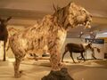 All the pampatheres, glyptodonts, ground sloths, equids, proboscideans,[143][144][83] giant short-faced bears, dire wolves, and machairodont species of both continents disappeared. The last of the South and Central American notoungulates and litopterns died out, as well as North America's giant beavers, lions, dholes, cheetahs, and many of its antilocaprid, bovid, cervid, tapirid and tayassuid ungulates. Some groups disappeared over most or all of their original range, but survived in their adopted homes, e.g. South American tapirs, camelids, and tremarctine bears (cougars and jaguars may have been temporarily reduced to South American refugia also). Others, such as capybaras, survived in their original range, but died out in areas to which they had migrated. Notably, this extinction pulse eliminated all Neotropic migrants to North America larger than about 15 kg (the size of a big porcupine), and all native South American mammals larger than about 65 kg (the size of a big capybara or giant anteater). In contrast, the largest surviving native North American mammal, the wood bison, can exceed 900 kg (2,000 lb), and the largest surviving Nearctic migrant to South America, Baird's tapir, can reach 400 kg (880 lb).