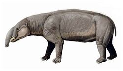 Xenarthrans are a curious group of mammals that developed morphological adaptations for specialized diets very early in their history.[40] In addition to those extant today (armadillos, anteaters, and tree sloths), a great diversity of larger types was present, including pampatheres, the ankylosaur-like glyptodonts, predatory euphractines, various ground sloths, some of which reached the size of elephants (e.g. Megatherium), and even semiaquatic to aquatic marine sloths.[41][42]