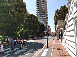 The highest point in the country is at the access to the Patio Palace residential building on the Chemin des Révoires (ward Jardin Exotique) from the D6007 (Moyenne Corniche street) at 164.4 m (539 ft) above sea level.[80] The lowest point in the country is the Mediterranean Sea.[81]