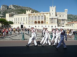 There is also a small military force. This consists of a bodyguard unit for the prince and his palace in Monaco-Ville called the Compagnie des Carabiniers du Prince (Prince's Company of Carabiniers);[66] together with the militarised, armed fire and civil defence corps (Sapeurs-Pompiers) it forms Monaco's total forces.[67] The Compagnie des Carabiniers du Prince was created by Prince Honoré IV in 1817 for the protection of the principality and the princely family. The company numbers exactly 116 officers and men; while the non-commissioned officers and soldiers are local, the officers have generally served in the French Army. In addition to their guard duties as described, the carabiniers patrol the principality's beaches and coastal waters.[68]