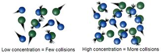 Collision theory is a principle of chemistry used to predict the rates of chemical reactions. It states that when suitable particles of the reactant hit each other with the correct orientation, only a certain amount of collisions result in a perceptible or notable change; these successful changes are called successful collisions. The successful collisions must have enough energy, also known as activation energy, at the moment of impact to break the pre-existing bonds and form all new bonds. This results in the products of the reaction. The activation energy is often predicted using the Transition state theory. Increasing the concentration of the reactant brings about more collisions and hence more successful collisions. Increasing the temperature increases the average kinetic energy of the molecules in a solution, increasing the number of collisions that have enough energy. Collision theory was proposed independently by Max Trautz in 1916[1] and William Lewis in 1918.[2] [3]