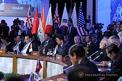 ASEAN engages with other international entities in the Asia-Pacific region and other parts of the world. It is a major partner of the EU, UN, SCO, PA, GCC, Mercosur, CELAC, and ECO.[18] It also hosts diplomatic missions throughout the world, maintaining a global network of relationships that is widely regarded as the central forum for cooperation in the region.[19] Its success has become the driving force of some of the largest trade blocs in history, including APEC and RCEP.[20][21][22][23]